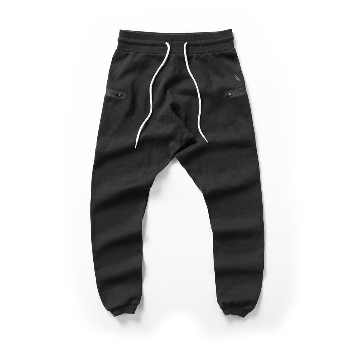 Heat-sealed zip pockets, Reinforced flatlock leg gusset, Heat-wrap drawstring tips