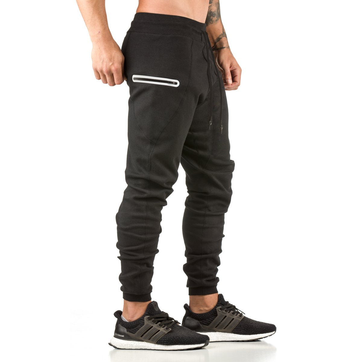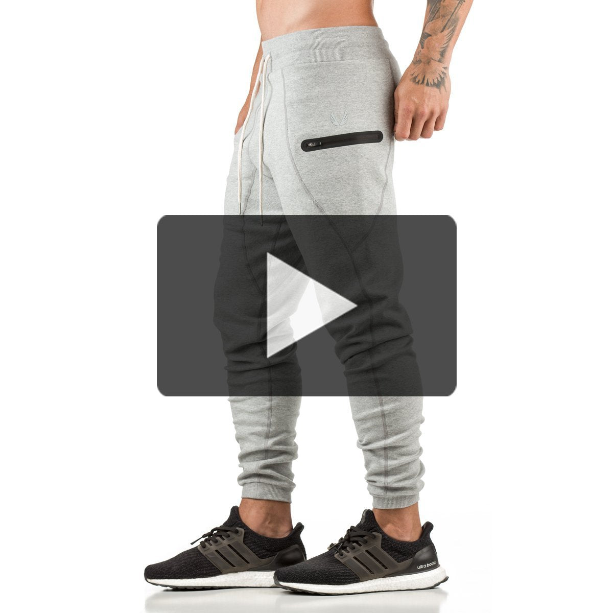 Cuffed Jogger with shifted heat-sealed pockets specifically designed to keep your phone or pocket items completely out of the way while training. Instead of pocket items sitting right on top of the leg where you want to rest weights or where they inhibit your movements while running, squatting and jumping. Made with tear resistant Flatlock seams throughout and a reinforced two-panel leg gusset. Constructed from our Signature Tech Fabric.